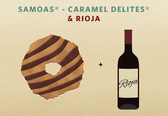 Caramel deLites® and Samoas® are the iconic caramel and toasted coconut-covered cookies that will taste even better (if you can imagine that) with an aged Rioja. Norris tells us she keeps a stash of these cookies in her freezer – for emergencies, of course.