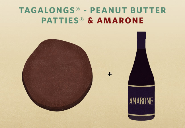 Peanut Butter Patties® and Tagalongs® are coated in chocolate and peanut butter and have a big taste, which means they need a big wine. Go get an Amarone.