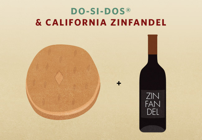 Do-Si-Dos® are oatmeal peanut butter sandwiches that pair exceptionally well with a big California Zinfandel. The combo will taste like your favorite peanut butter and jelly sandwich.