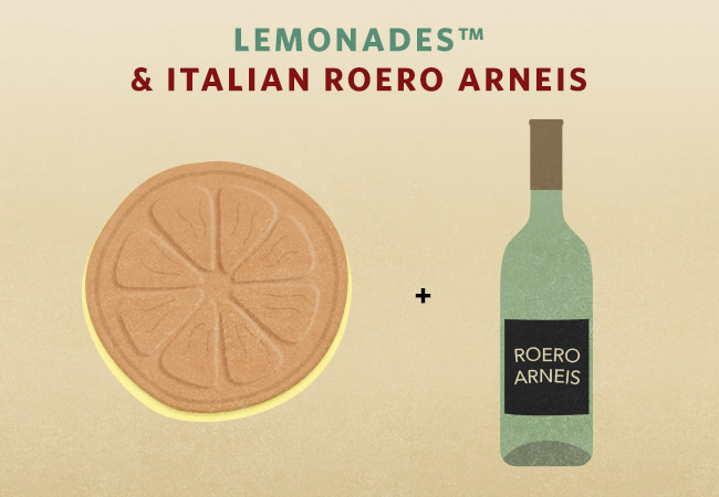 Lemonades™ are lemon-icing-topped shortbread cookies. Norris got adventurous here suggesting an Italian Roero Arneis. Arneis is a white wine grape that originated in Piedmont, Italy and is most commonly found in the hills of the Roero, which is northwest of Alba. Yum.